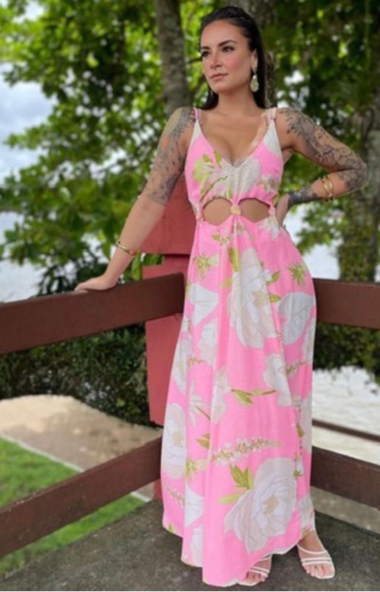 Vestido roda saia clearance rosa, VESTIDO LONGO GISELA MIX DE RENDA Martha Medeiros clearance