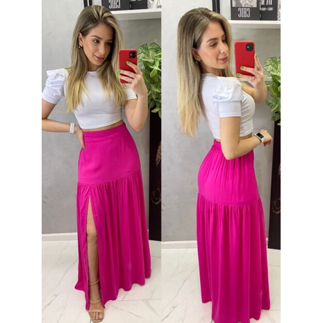 Saia longa rosa clearance pink, Saia Longa Lisa em Viscose com Forro Sob Rosa clearance