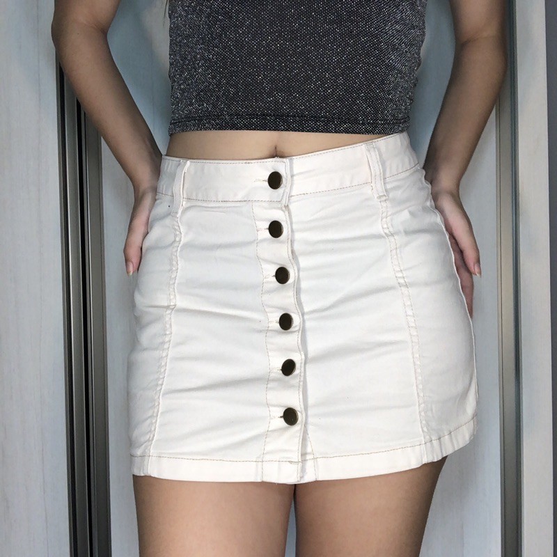 Saia branca com clearance botao, Saia Longa Bot es Branca Elora clearance