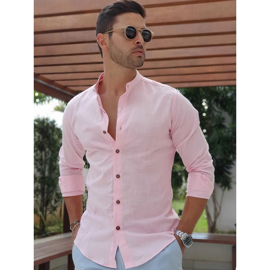 Camisa clearance social preço, Camisa Social Gola Padre Masculina Linho Algod o Qualidade Premium clearance