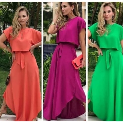 Conjunto Midi Saia e Blusa Crepe Chiffon Lil s VANKOKE Moda