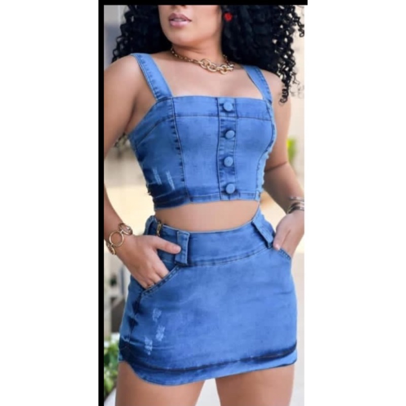 Conjunto Jeans Saia Cropped Lycra Shopee Brasil