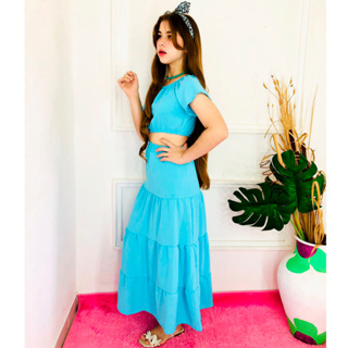 Conjunto saia e clearance blusa juvenil, Conjunto Infantil Menina Saia Longa Blusa Juvenil Festa Luxo clearance