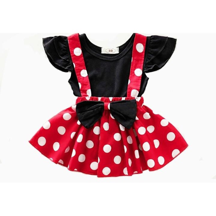Saia Salopete Minnie Fantasia de Beb e Blusa Preta e Tiara