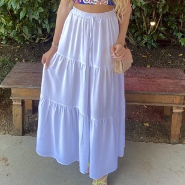 Saia longa branca clearance rodada, Saia longa lisa babados Made In Guarda Ecological Trend clearance