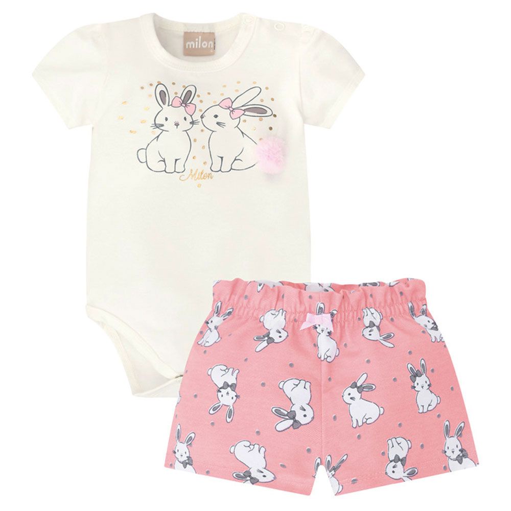 Conjunto Bebe Menina Milon Body e Shortinho Estampado Shopee Brasil