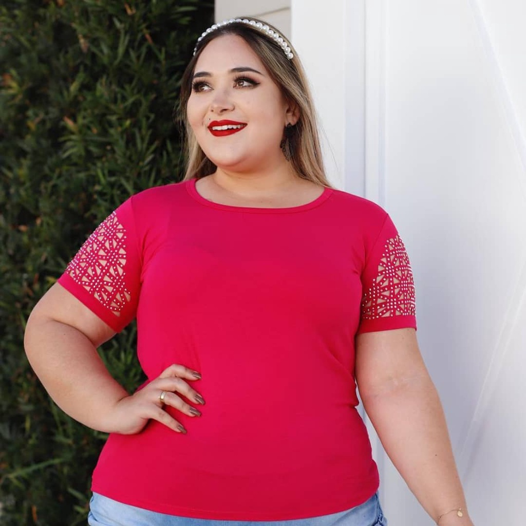 Camiseta Feminina Plus Size com Pedrinhas GG EXG 10 Cores