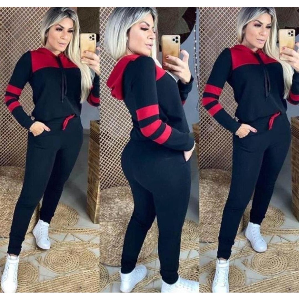 Conjunto de Inverno Feminino Cal a e Blusa de Frio Com Capuz Moletom em Malha Crepe