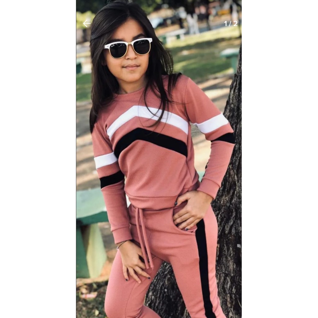 Conjunto de malha clearance infantil, Conjunto Infantil em Malha Crepe Rosa com Preto Roupa Infantil para Menina Nunca Usado 81335588 enjoei clearance