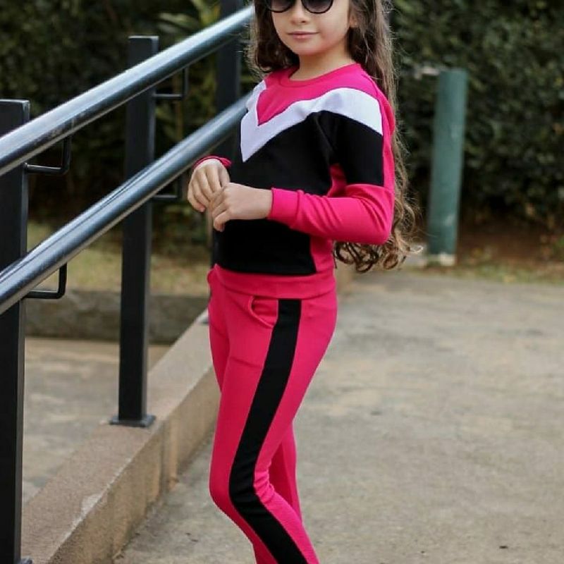 Conjunto Infantil em Malha Crepe Rosa com Preto Roupa Infantil para Menina Nunca Usado 81335588 enjoei