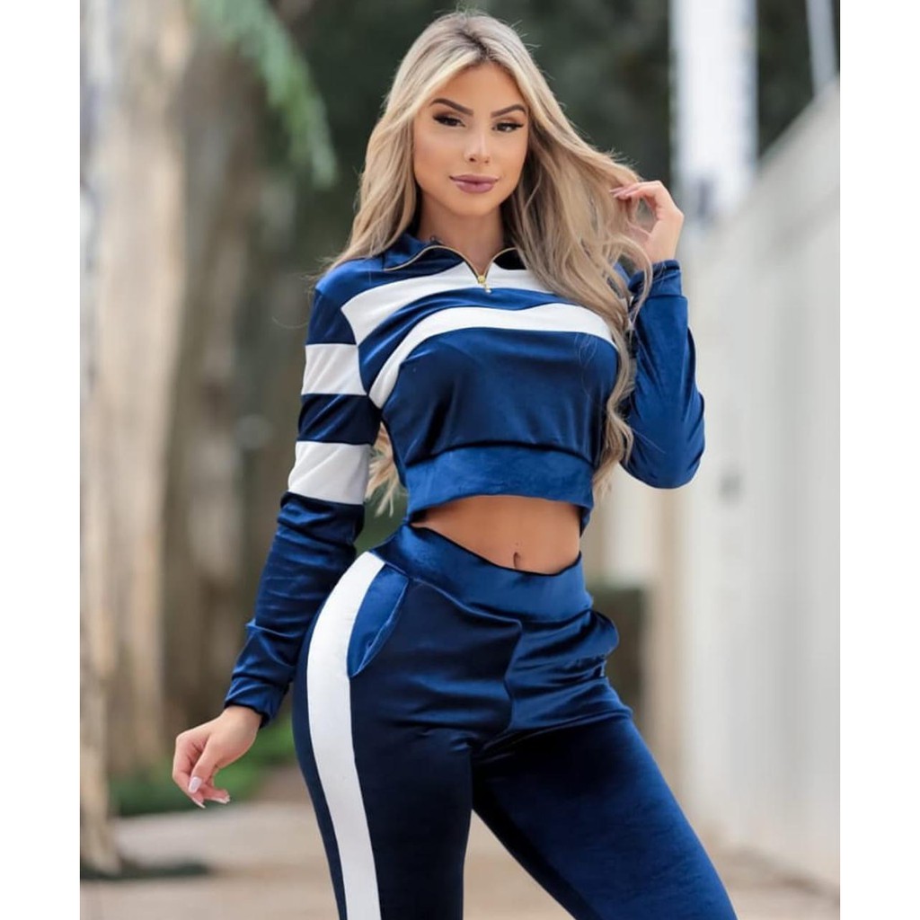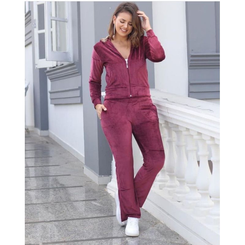 Conjunto Veludo Blusa de Frio e Cal a com Bolso Feminino Moda Inverno Promo o