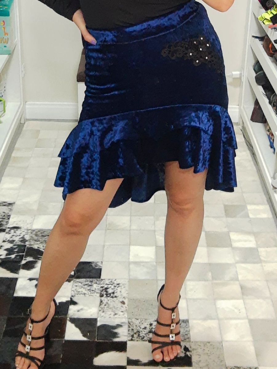 Saia Sereia Curta Veludo Molhado Azul Saia Feminina Estilo H