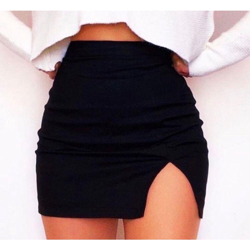 Saia Feminina curta colada com fenda frontal modinha elengance