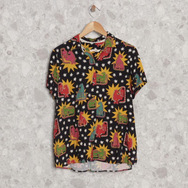 Riachuelo Camisa feminina de viscose com la o Hana Folhas preta
