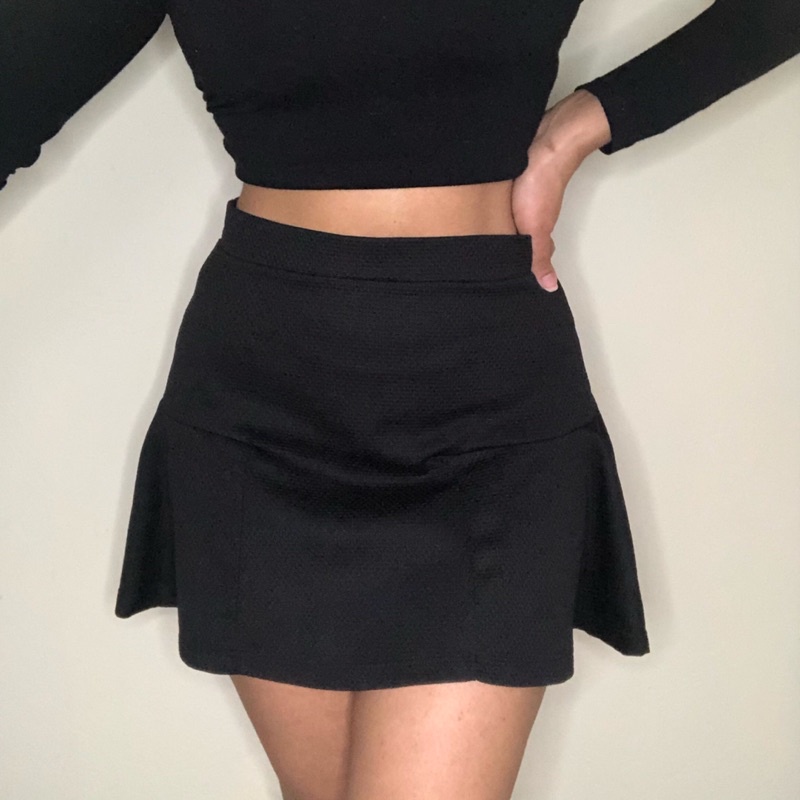 Mini Saia Rodada Colegial Preta Cintura Alta Texturizada Tamanho M