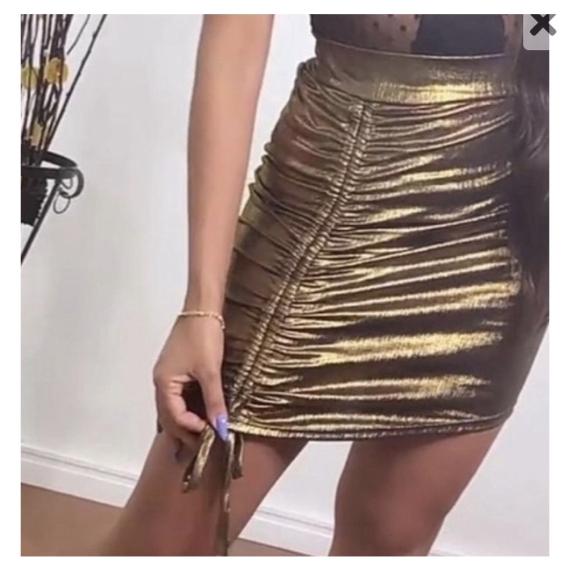 Saia clearance metalizada dourada, Saia Metalizada Alongada Dourada clearance