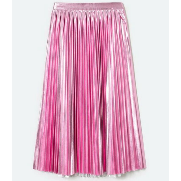 Saia Midi Plissada Metalizada Moda Ver o 21 22 Rosa GG