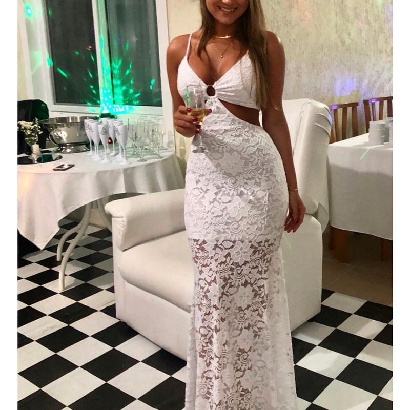 Vestido Longo em Renda com Al a Fina e Amarra o nas Costas Branco