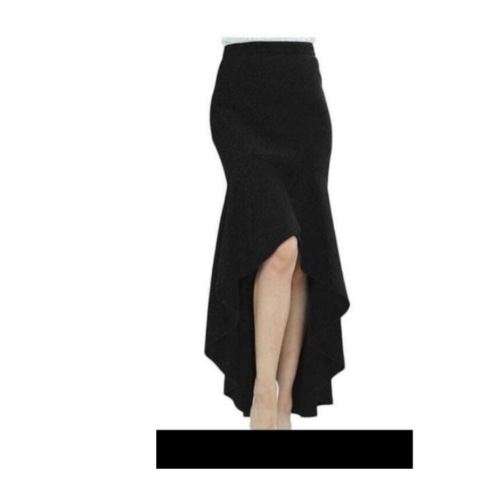 Saia Longa Preta Moda Evang lica Babado Rabo Sereia Mullet Cintura Alta Saia Curta Na Frente E Comprido Atr s
