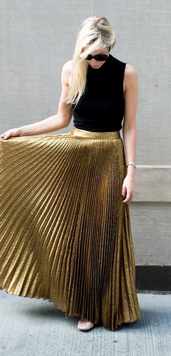 Saia Longa Plissada Metalizada Dourada Moda 2017 Saia Feminina Importada Nunca Usado 19903890 enjoei