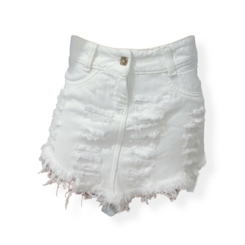 Saia clearance branca rasgada, Saia Jeans Midi Destroyed Rasgado com Fenda Titanium Jeans clearance