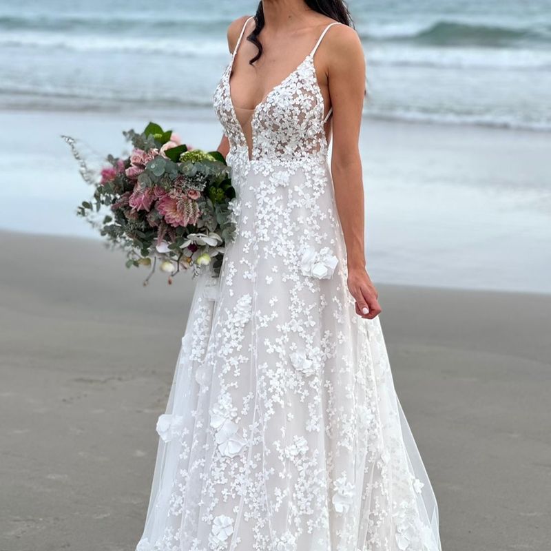 Vestido de Noiva Flores 3 D Vestido Feminino Sob Medida Atelie
