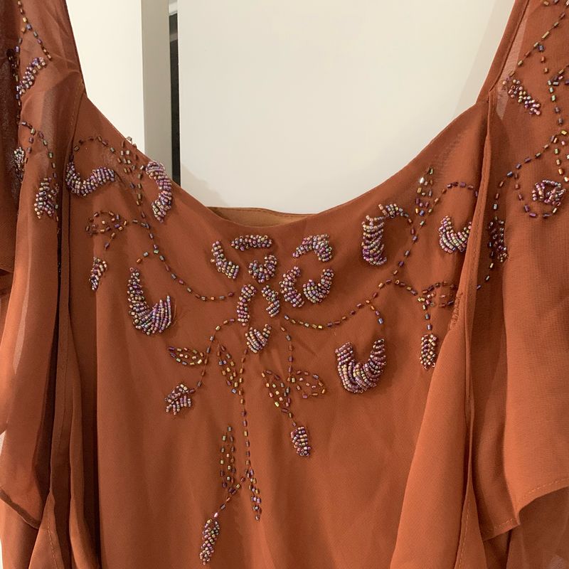 Vestido de Festa Marrom Bordado Gg Novo Vestido Feminino