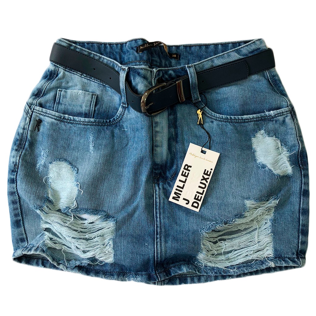 Saia Miller Jeans Premium Original Lisa Azul Barra Feita MILLER