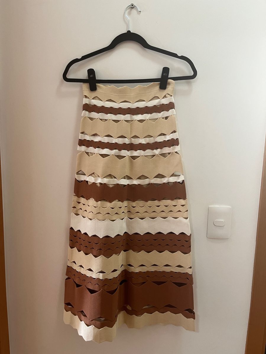 Saia Midi Marrom Bege Branca Trico Bandagem Evas Saia Feminina