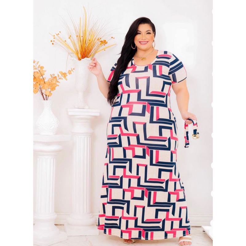 Vestido longo saia evas com cinto Plus size viscolycra senhora evang lico