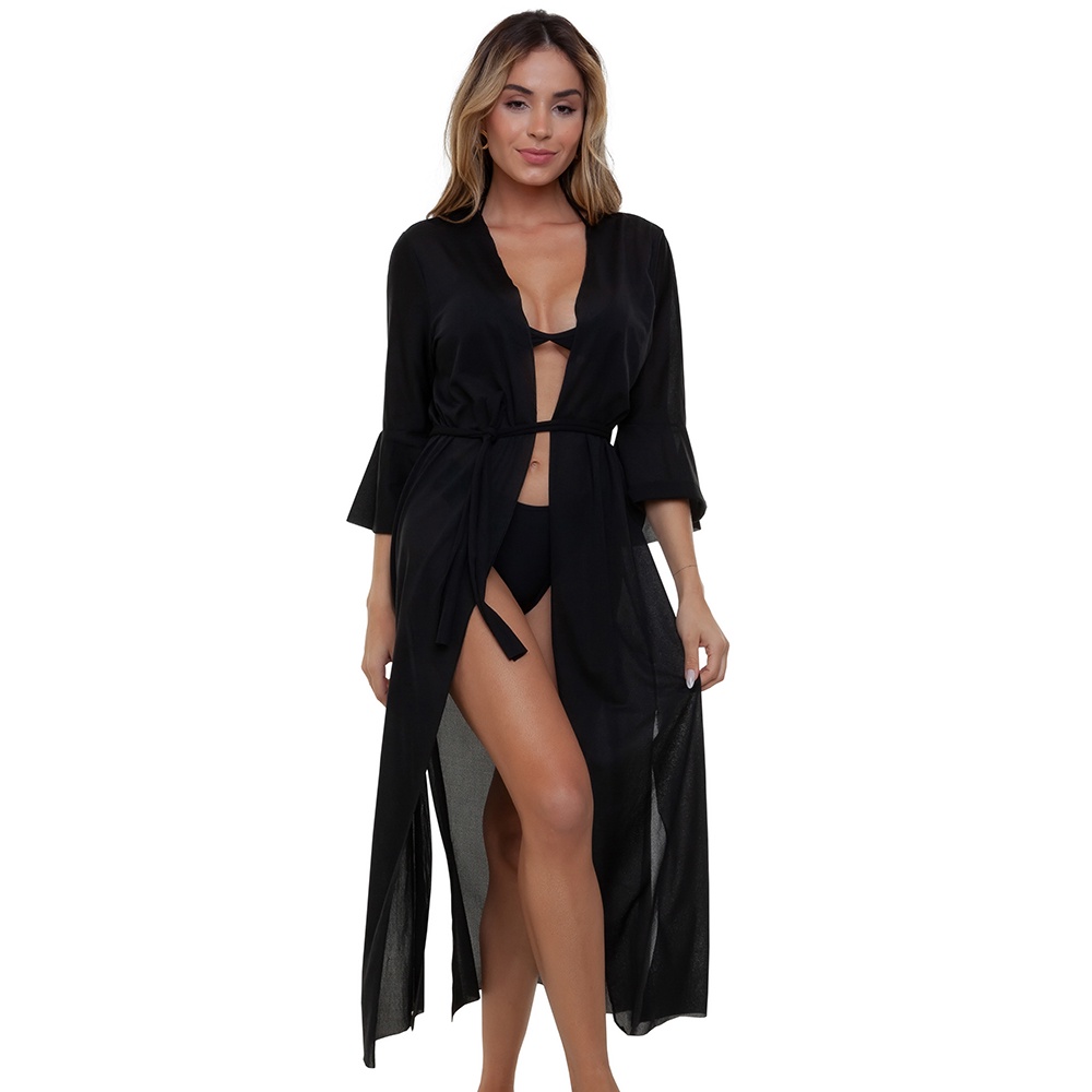 Saida de Praia Longa Lisa Mulher Rica Moda Praia 2022