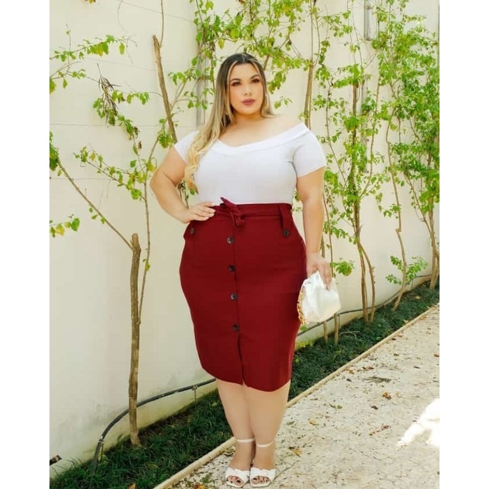 Saia botoes plus clearance size, Saia Midi Plus Size Com Bot es na Frente clearance