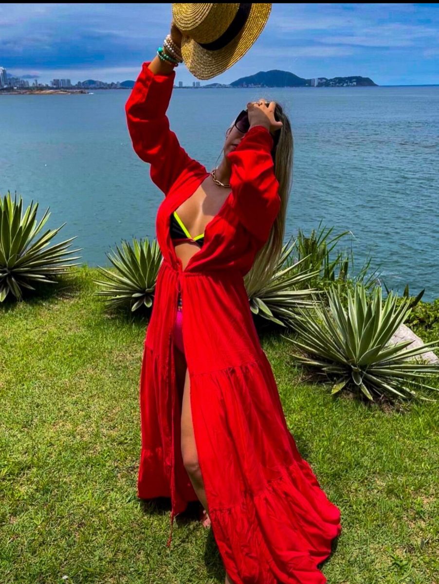 Sa da de praia longa luxo vermelha Elo7 Produtos Especiais