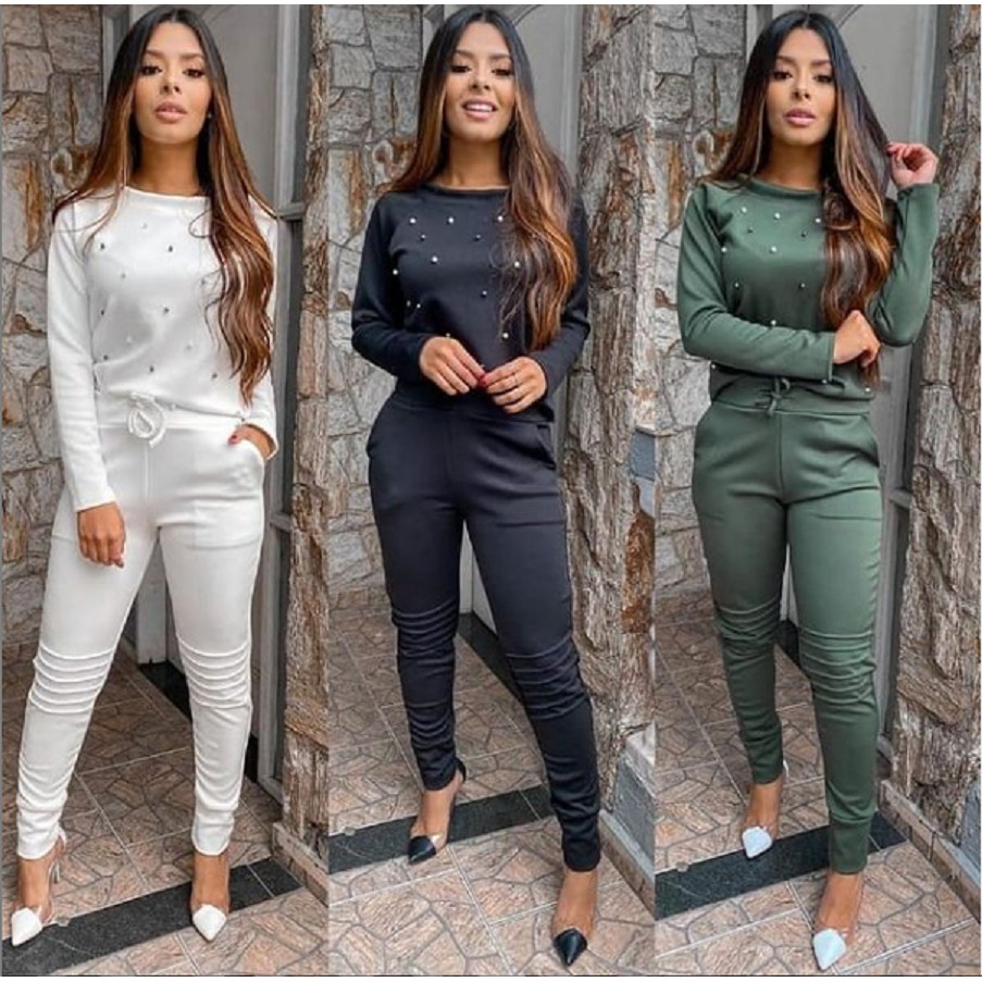 Conjunto Feminino Manga Longa com P rolas P ao G Tend ncia