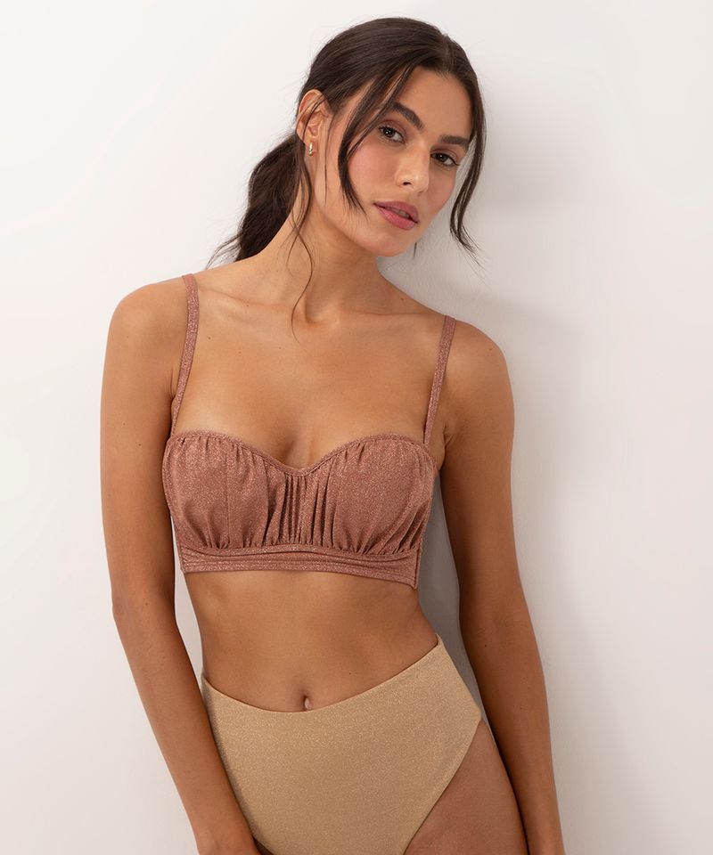biqu ni top cropped lurex com bojo al mare collezione bronze C A