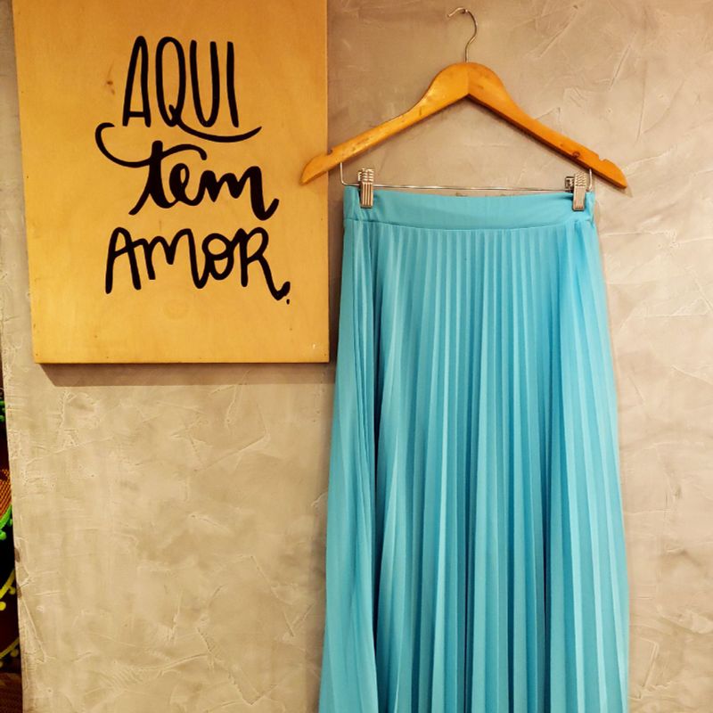 Saia Plissada Azul Turquesa Saia Feminina Valentina Acess rios Ipanema Nunca Usado 41313979 enjoei