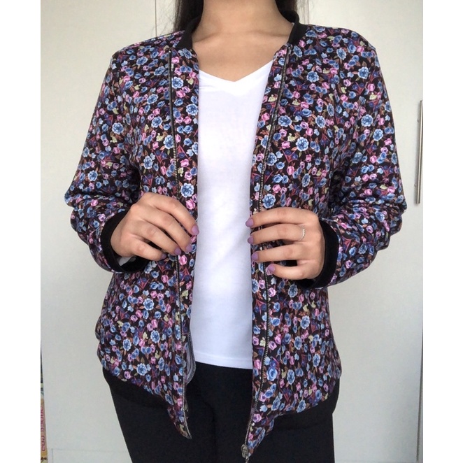 Blusa de Frio Florida com Capuz e Bolso Casaco Feminino Usado