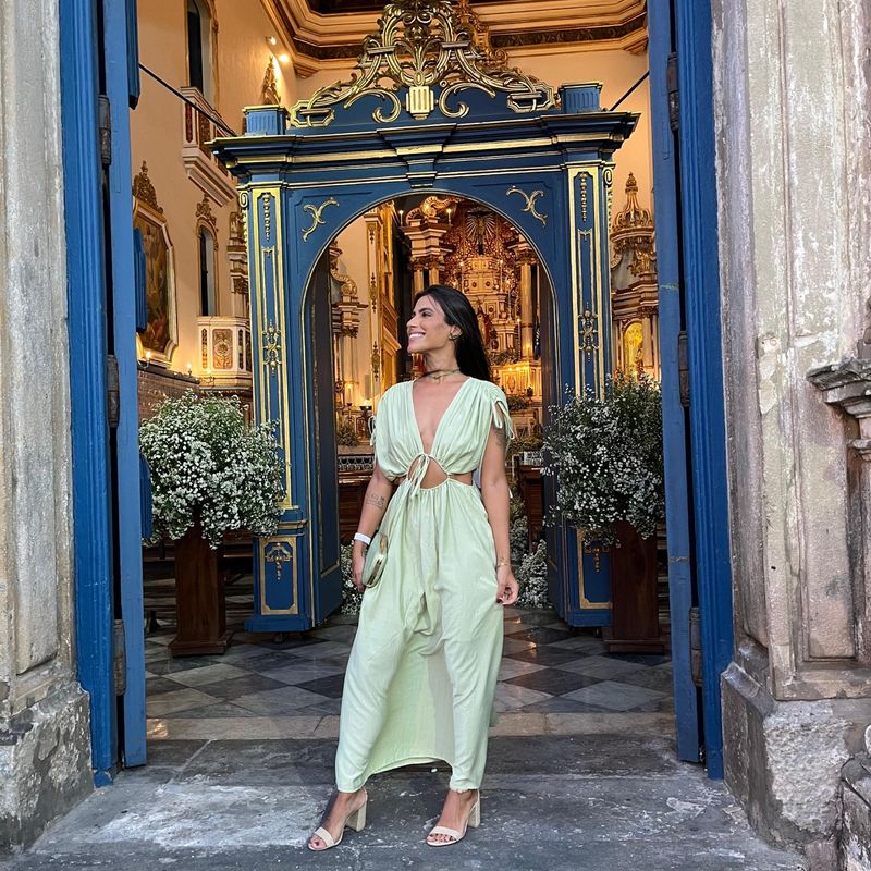 Vestido AMARO Longo Com Detalhe Costas Verde Faz a Boa