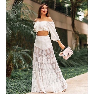 Conjunto Cropped Alcinha E Saia Renda Longo Festa Roupas R 88