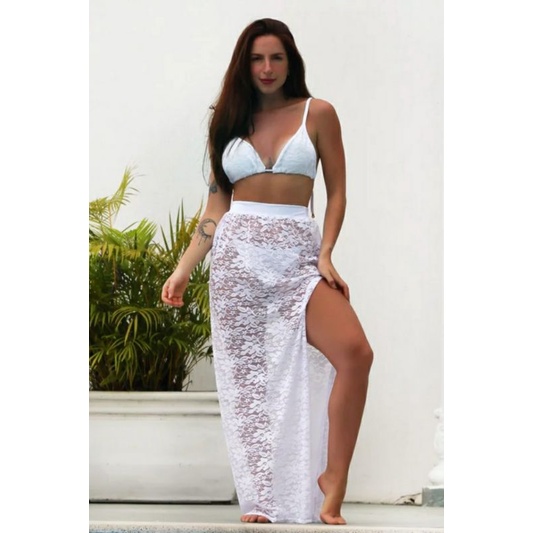 Sa da de Praia Saia de renda com fenda lateral Shopee Brasil