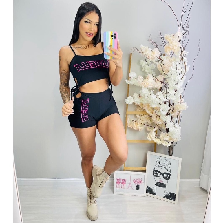 Conjunto Feminino Labellamafia Short Top Fitness Empina Bumbum Roupas para Academia Confort vel