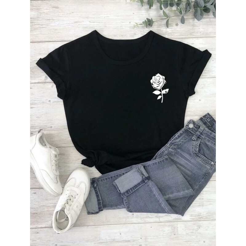 Camiseta Tumblr Feminina T Shirt Flor Aesthetic Dark Camisa