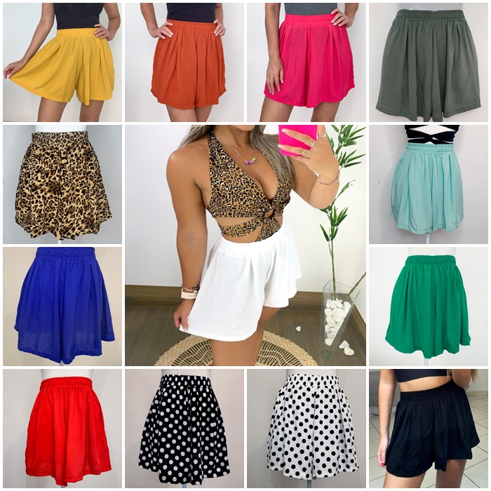 Short God Feminino Viscose Cintura Alta Moda Blogueira Shopee