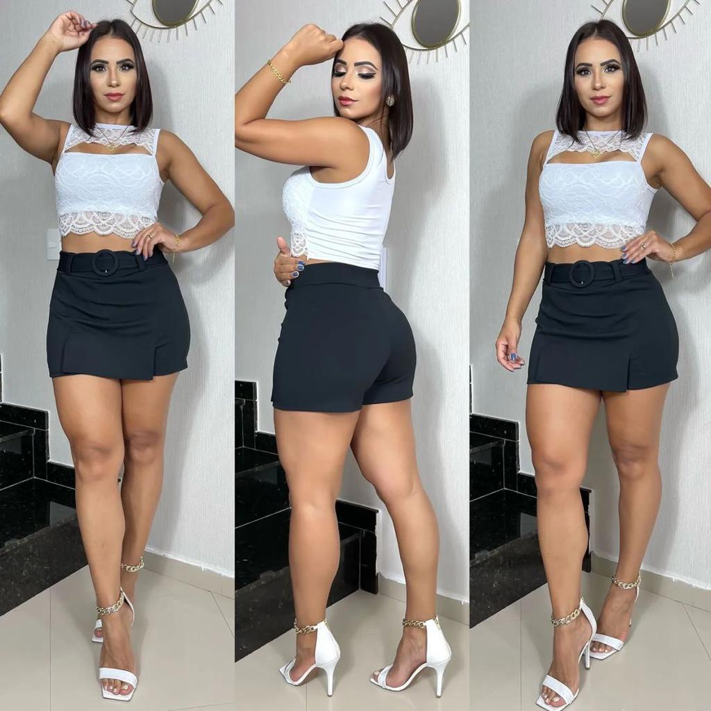 Short Saia Curto Com Cinto Malha Crepe Cintura Alta Shopee Brasil