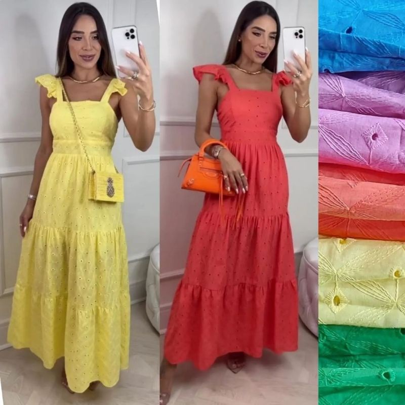 Tecido clearance lese vestido, Vestido Feminino Tecido Lese Modelo Midi De Al a Moda Ver o clearance