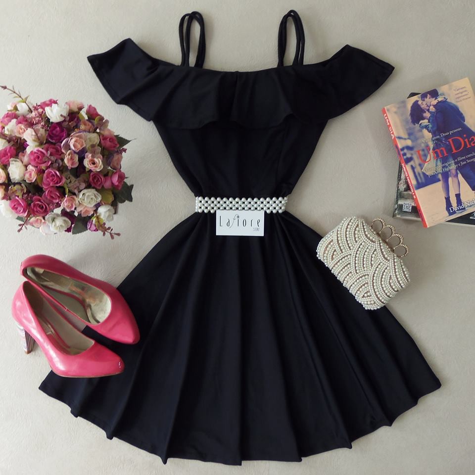 Vestido preto curto clearance e rodado