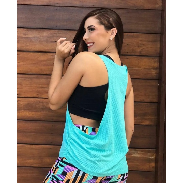 Regata Dry Fit Feminina Academia Camiseta Cavada fitness detalhe