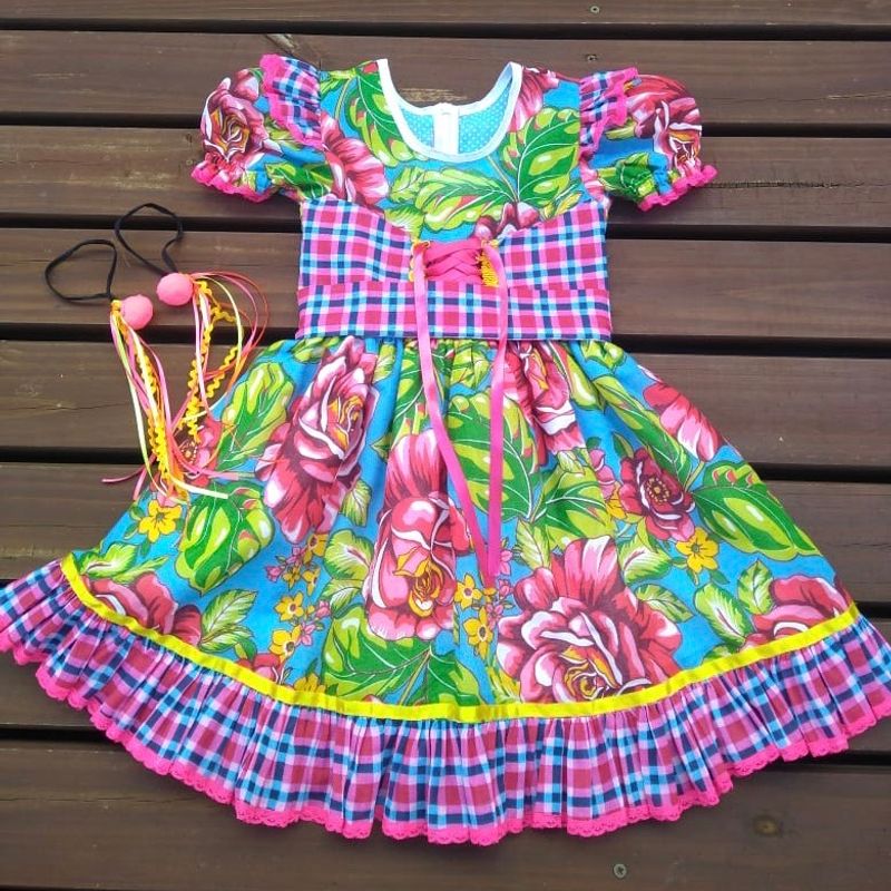Vestidos de chita clearance infantil, Vestido Flores E Po Festa Junina Chita Toddler pe as qualidade clearance