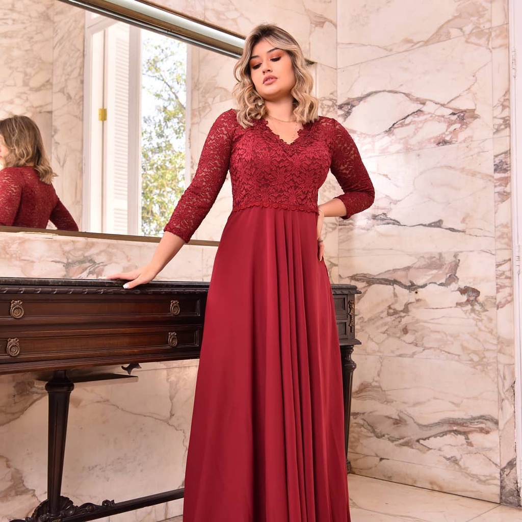Vestido longo festa madrinha casamento marsala manga longa 3 4 inverno