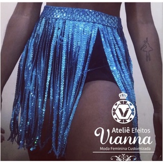 Saia Lantejoula Carnaval Folia Fantasia de Carnaval Prata Dourada Preta Azul Brilhante Brilho Festa Gringa Burguesa